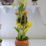 Réalisation d’une composition avec des bulbes de muscaris ou narcisses en hauteur.
