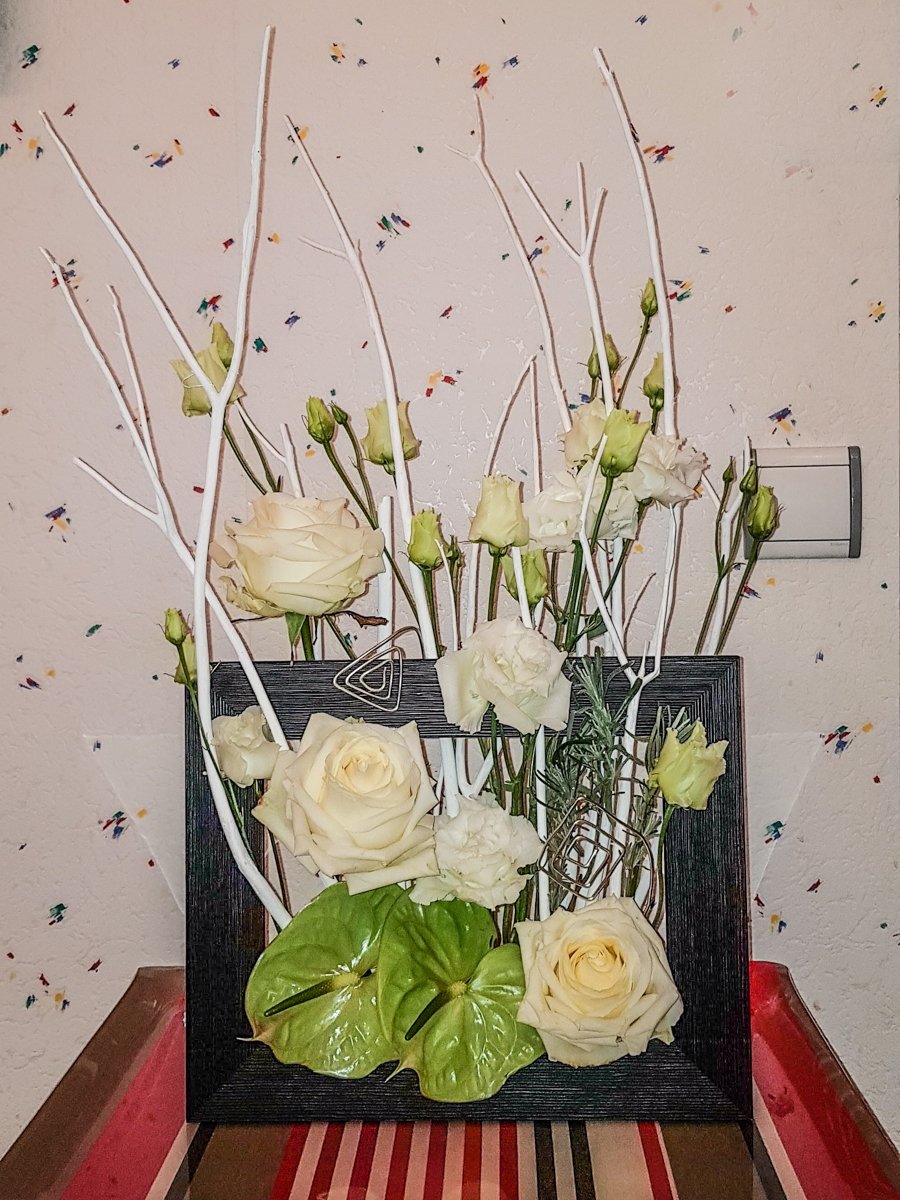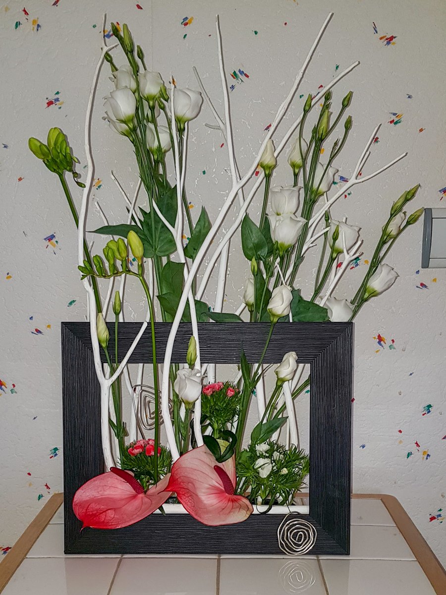 5 participantes ont créé leur structure pour réaliser ce cadre fleuri qui peut être réutilisé avec différentes fleurs.