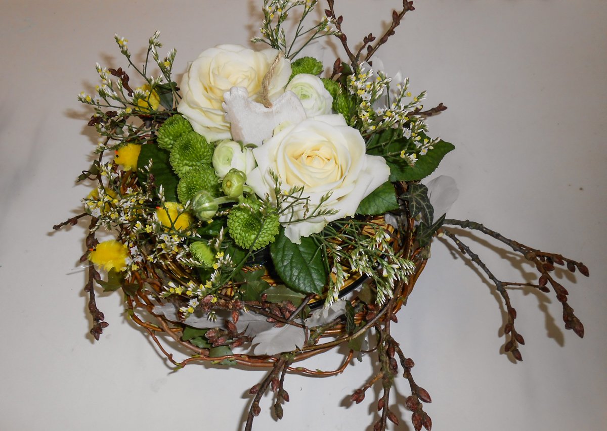 Chacune a pu réaliser son bouquet en fonction de son contenant avec la technique de calage des magnolias.