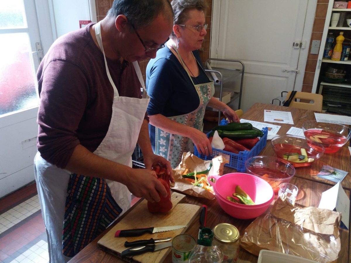 Les 9 personnes présentes ont participé activement à ce cours qui s’est déroulé dans la bonne humeur et avec la dégustation des plats préparés ensemble :