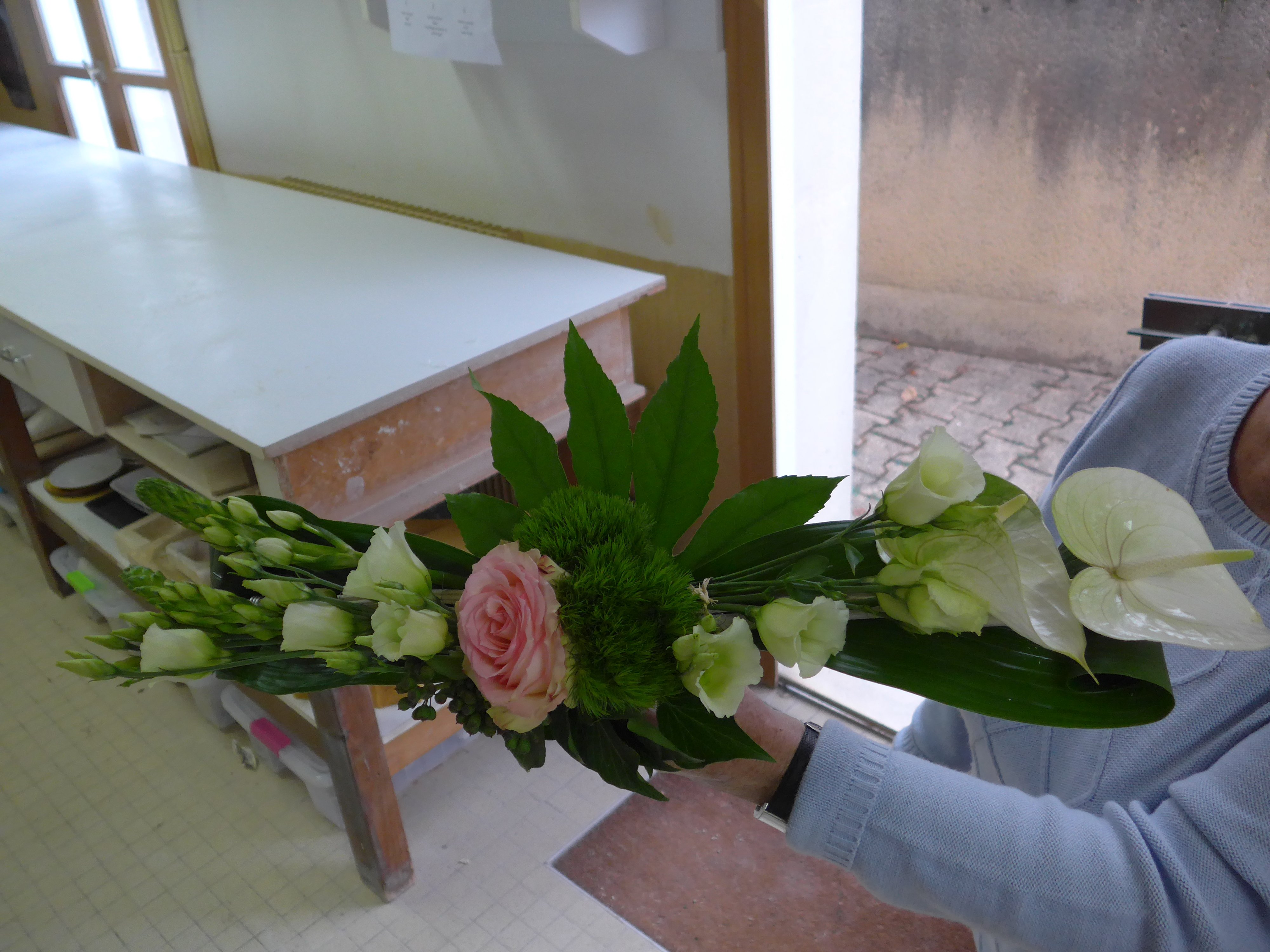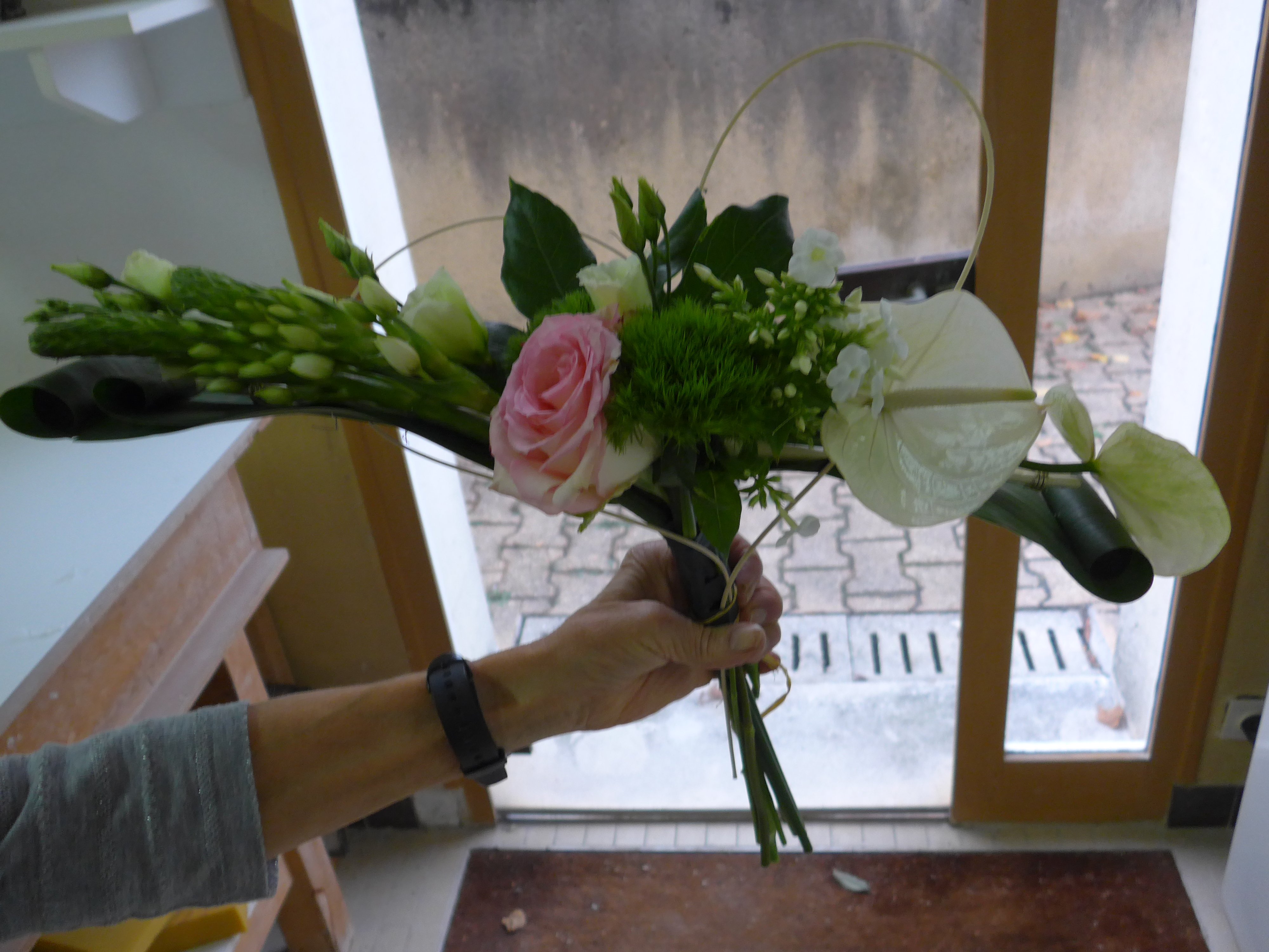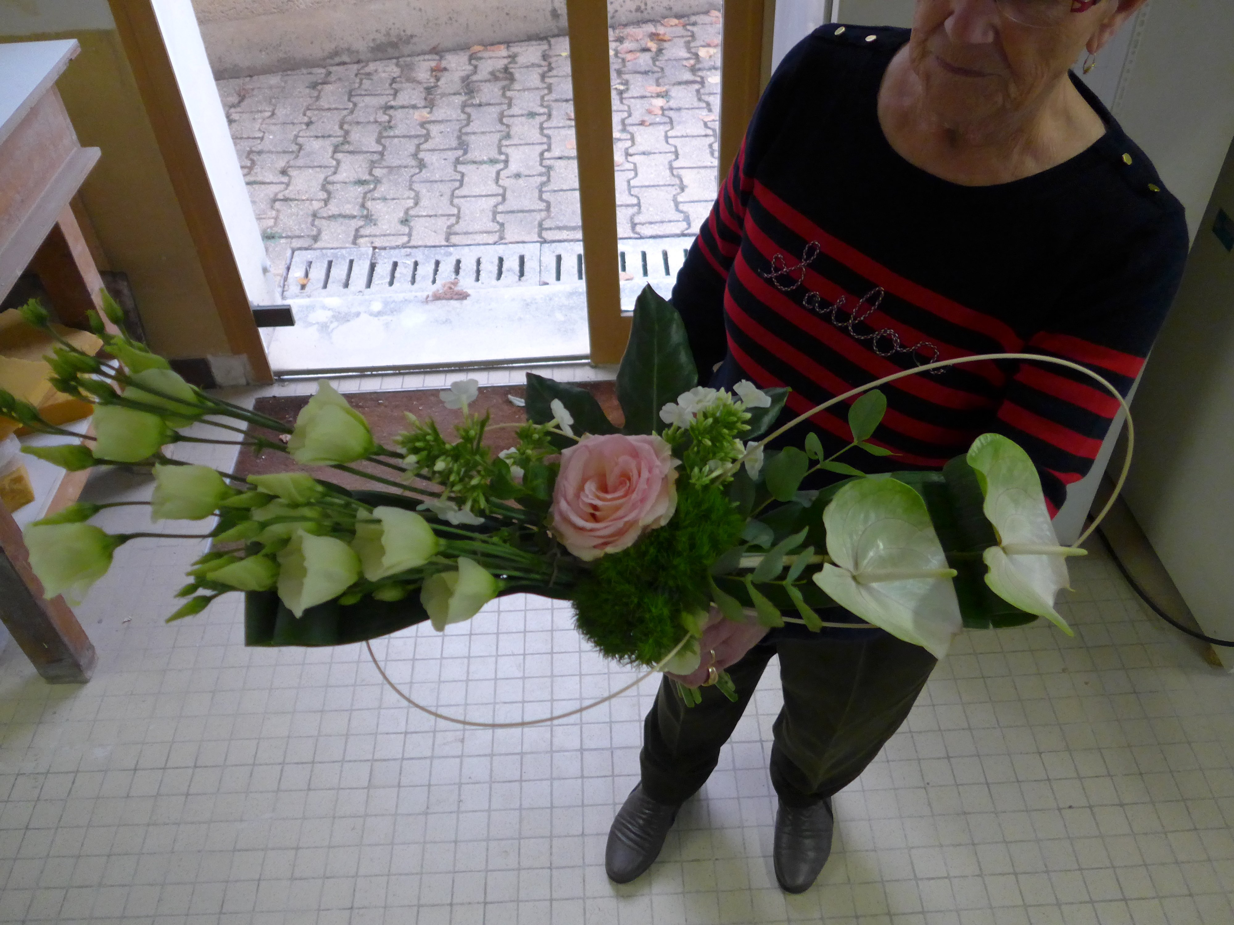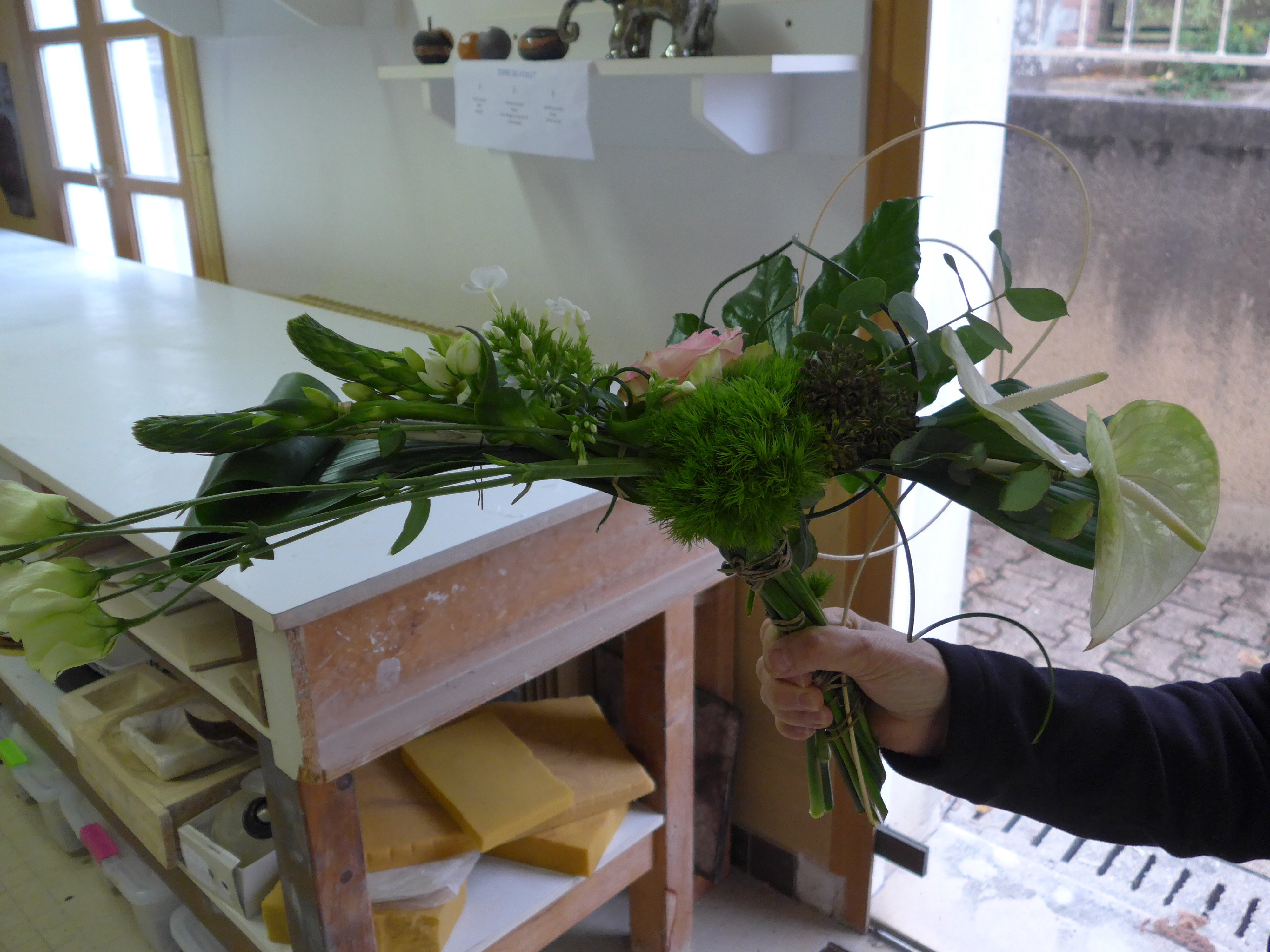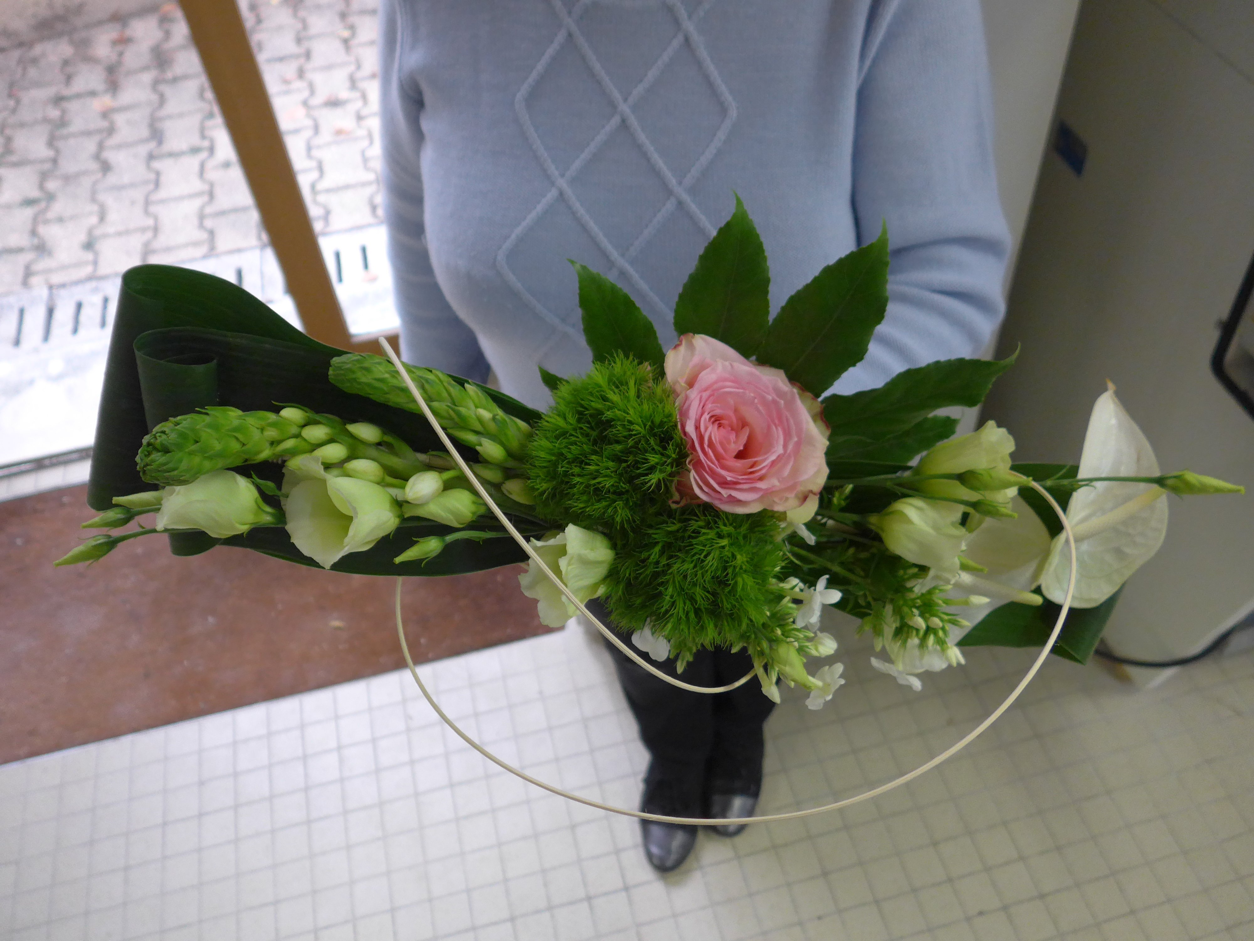 Dans une bonne convivialité, les 4 participantes ont créé une structure pour petites fleurs : renoncules, freesias ou perce-neige par exemple.