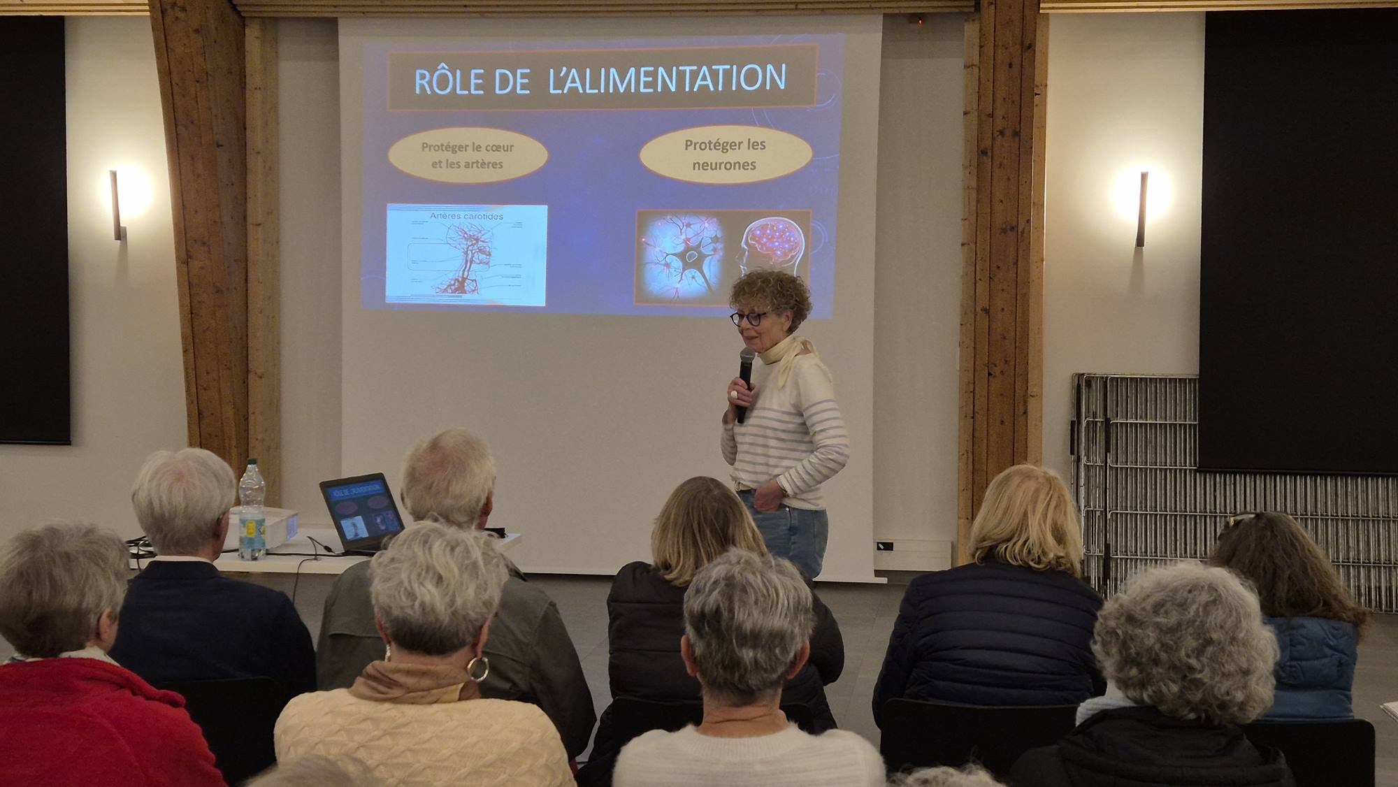 En conclusion, Madame Paumard a apporté un éclairage précieux sur l’importance de l’alimentation dans la santé cérébrale. Elle a rappelé les bienfaits du régime méditerranéen, riche en antioxydants (fruits et légumes colorés), en oméga-3 (poissons gras, noix, huile de colza) et en épices comme le curcuma, pour protéger le cœur et les neurones.