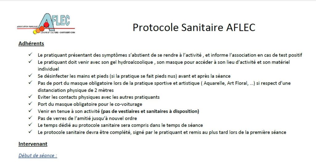 Informations et documents concernant la COVID19 au sein de l’AFLEC pour les activités et la vie de l’association.