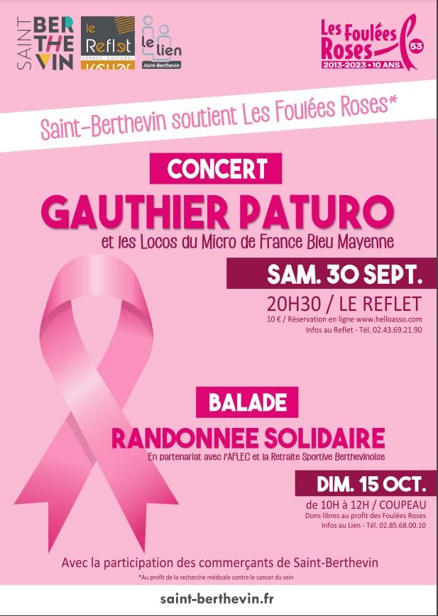 Samedi soir 30 septembre – Concert au Reflet à Saint-Berthevin – Octobre Rose .