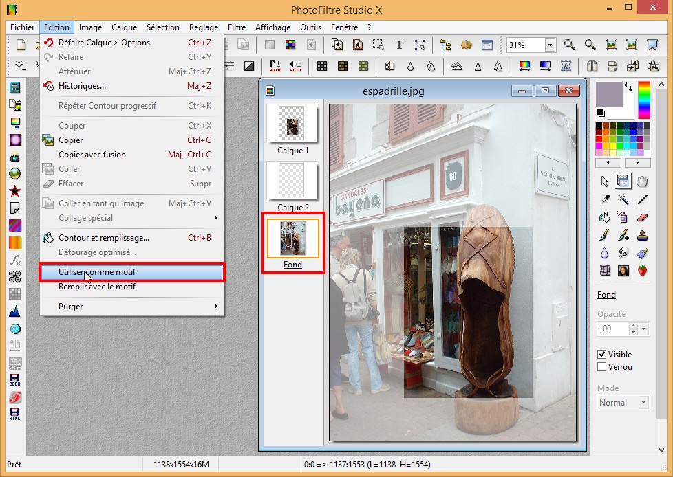 - Menu Edition / Utiliser comme motif.
