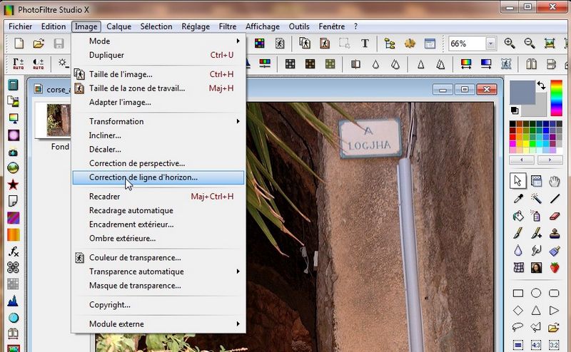 Bien que les appareils numériques propose une grille d'aide à la prise de vue il est possible que votre ligne d'horizon ne soit pas respectée. Vous pouvez y remédier avec Photofiltre Studio mais avec une très légère perte de surface de la photo.