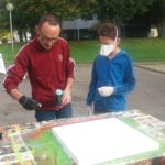 9 jeunes de 11 à 14 ans ont réalisé une toile sous les conseils de SAMESADA artiste changéen. Dès mardi, chacun a choisi son thème : manga, jeux vidéo, sport … A l’aide de bombes, posca, collages, découpages, chaque jeune a évolué à son rythme. Samesada a été attentif à chaque jeune pour l’encourager, le pousser vers des univers inhabituels.